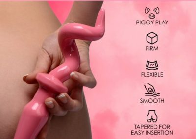 Send them to hog heaven with this sexy pig tail anal plug. This spiraled butt plug is perfect for stuffing up your little swine, and is topped with a curly tail. The bubblegum pink rubber is nice and firm, and is shaped so it will stay where it is put. The slick material is easy to clean and slides neatly in place, making it the perfect addition to your nasty little pig.